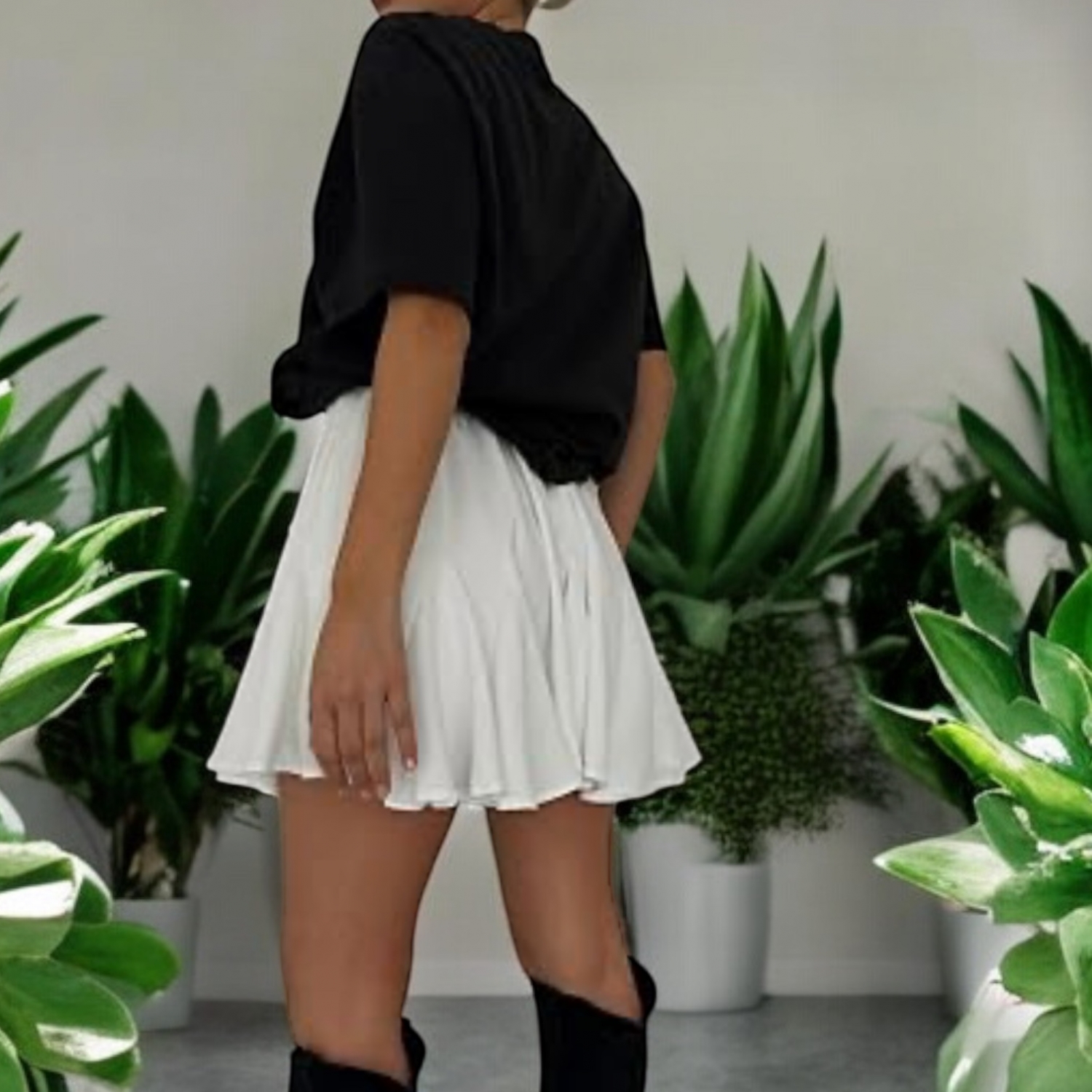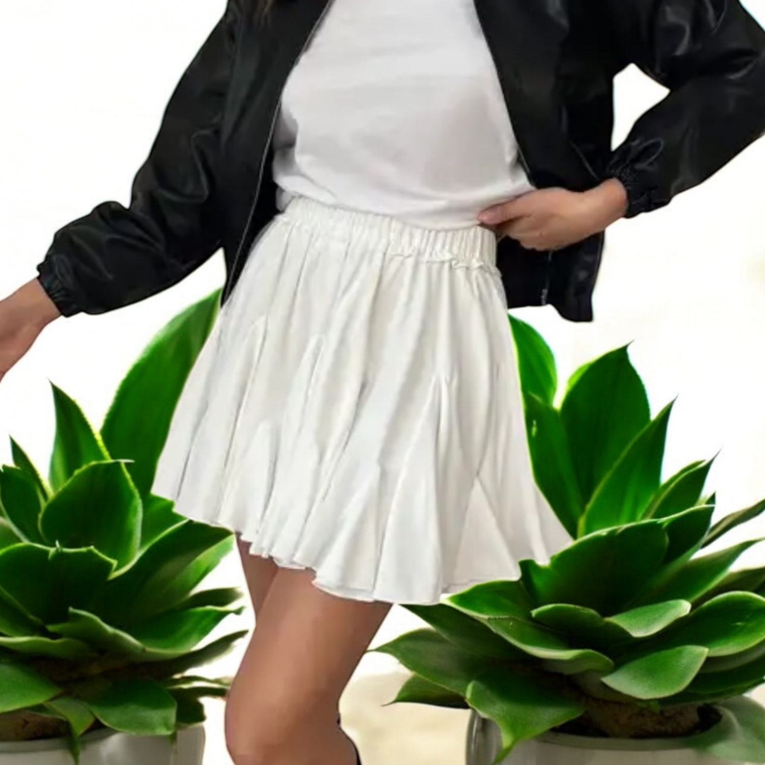 Adaugă prospețime garderobei tale cu această fustă albă scurtă, evazată, ideală pentru zilele călduroase și ținutele urbane. Fabricată dintr-un material ușor și plăcut la atingere, cu talie elastică pentru confort sporit și potrivire perfectă. Se asortează ușor cu tricouri, topuri sau jachete din piele pentru un look modern și relaxat.