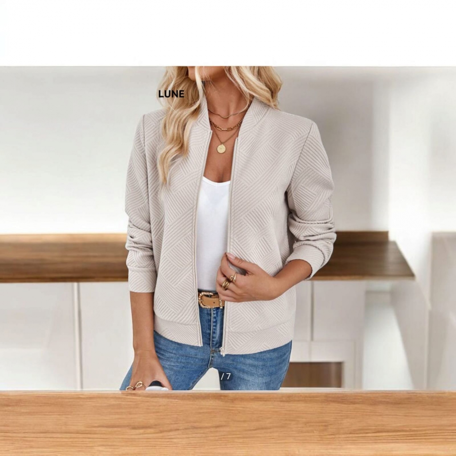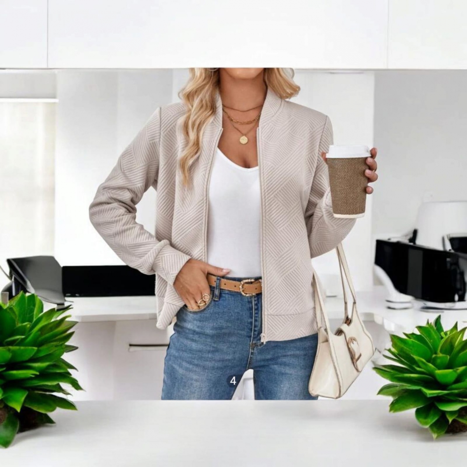 Jachetă Kaki Tricotată Jacquard Luneh – Elegantă și Modernă | Potrivită pentru Ținute de Navetă sau Casual-Chic | Discount Mix