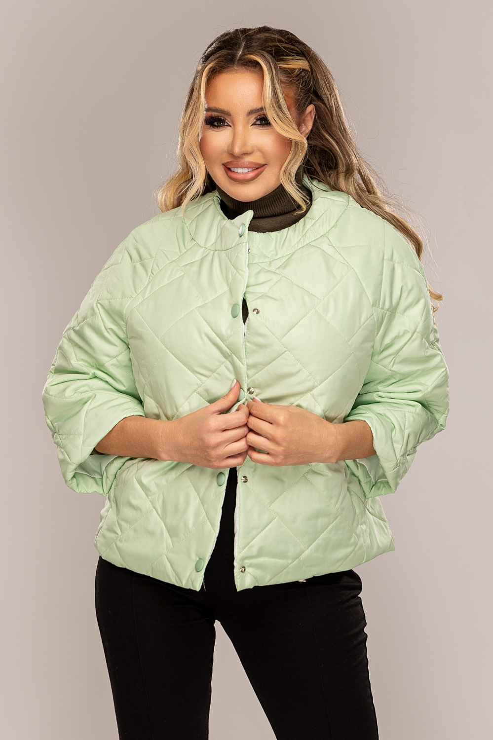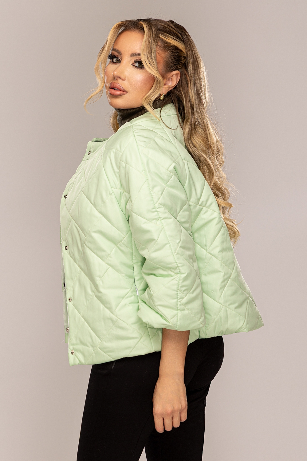 Jacheta dama vernil din fas matlasat cu capse de toamna/primavara | Discount Mix