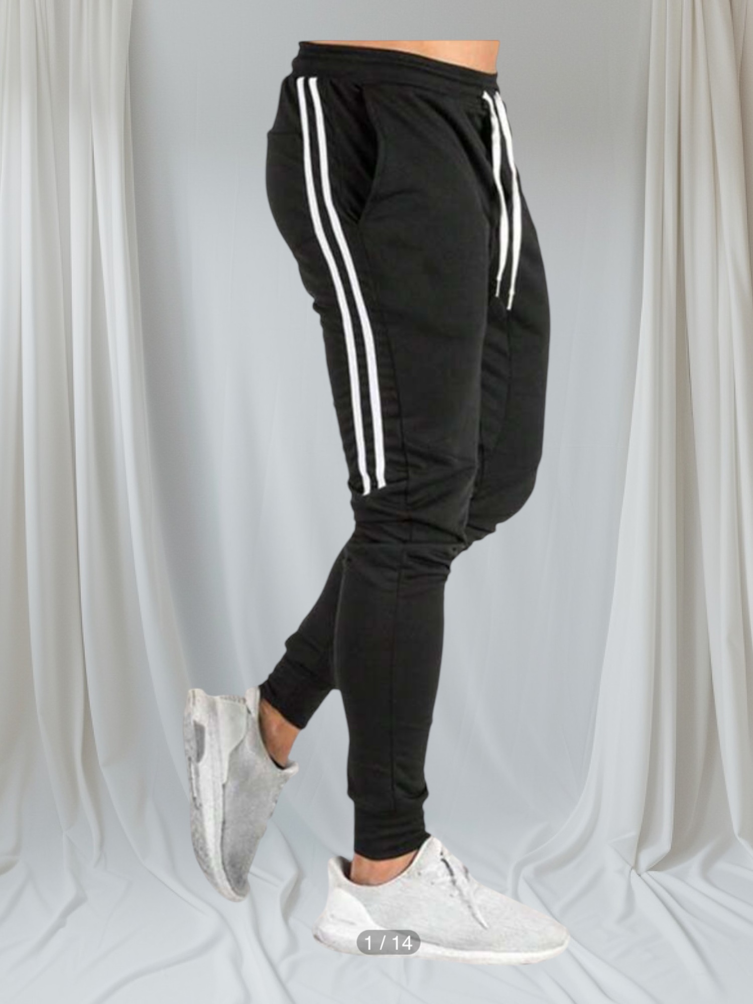 2Pantaloni de trening cu șnur largi în talie cu bandă laterală pentru bărbați | Discount Mix