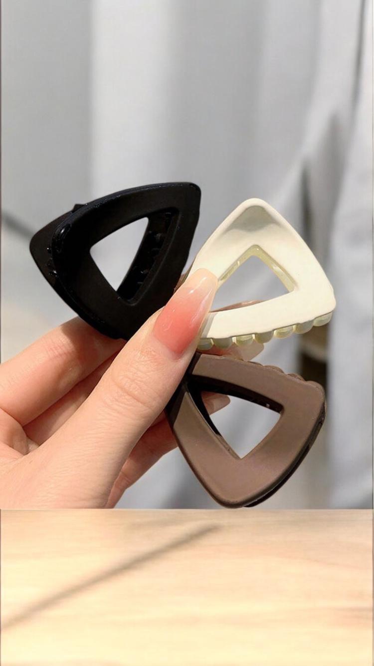 Set de 3 cleme de păr triunghiulare, în culori elegante: negru, alb È™i cafea, ideale pentru orice ocazie. Aceste accesorii versatile È™i moderne sunt perfecte pentru coafuri zilnice, spălatul feÈ›ei, baie sau machiaj. Designul compact È™i rezistent se potriveÈ™te oricărei È›inute, oferind un plus de stil È™i funcÈ›ionalitate. Adaugă o notă de rafinament rutinei tale cu aceste cleme practice È™i trendy.