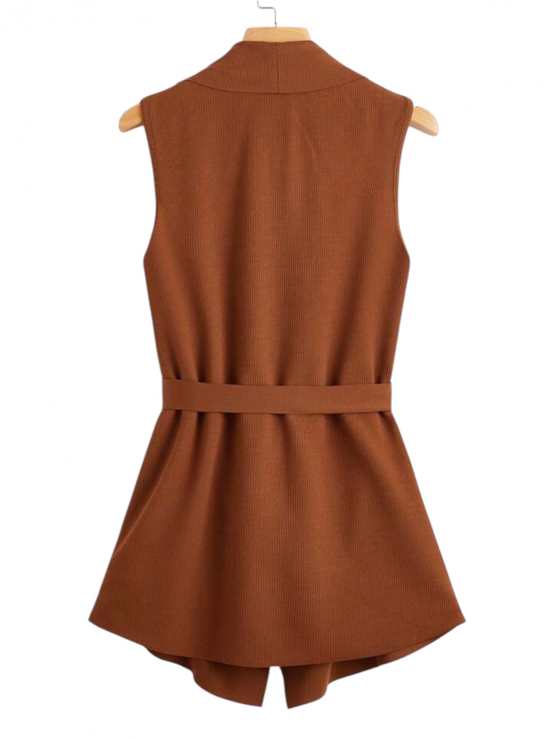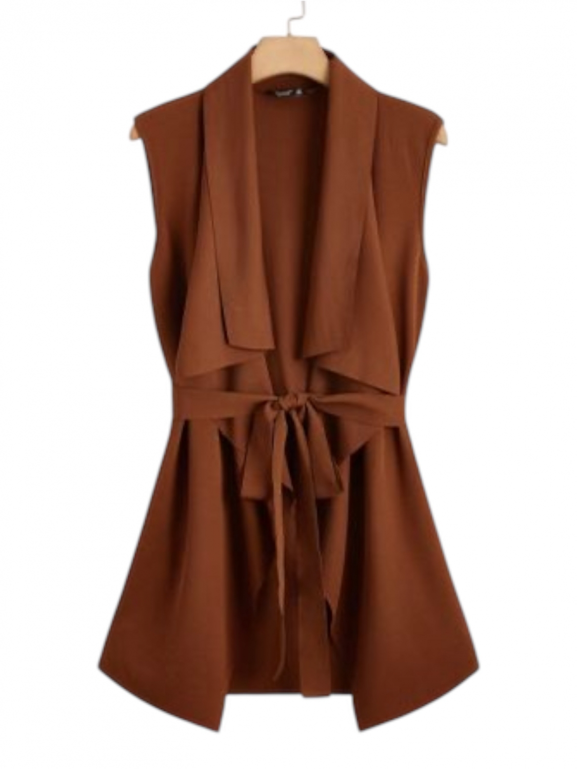 Completează-ți ținutele cu stil și rafinament purtând această vestă maro fără mâneci, ideală pentru sezonul primăvară-toamnă. Cu un design modern și croială ușor evazată, vestă se încheie cu un cordon ajustabil în talie, accentuând silueta și oferind un aspect feminin. Reverele late și căderea elegantă a materialului adaugă un aer sofisticat, fiind perfectă pentru combinații office, casual sau smart-casual.